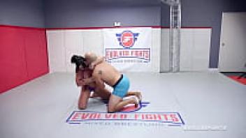 Naked Wrestling as Miss Demeanor Fights Chad Diamond Gagging on his dick and then loving good