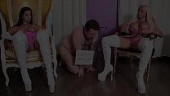 Slaves are humiliated by beautiful yet sadistic women.