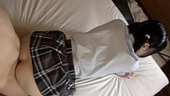Uncensored beauty from Japan. 19 years old, with large, thin breasts and black hair. Kei-chan. Creampie sex, a gorgeous shaved pussy, and uniform cosplay