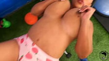Fake Hostel: A slender blonde beauty wearing body stockings, tethered and adored by Futa MILF, with a cream pie in her mouth and within her dripping wet, shaved pussy