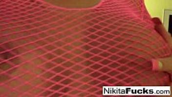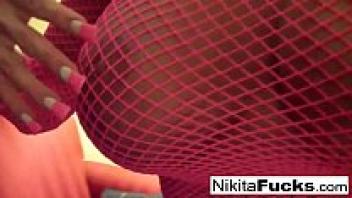 A solitary fishnet solo featuring attractive Milf Nikita Von James