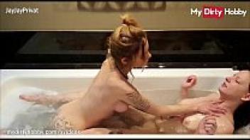 Beautiful lesbian teenagers playing with their fingers in the bathtub