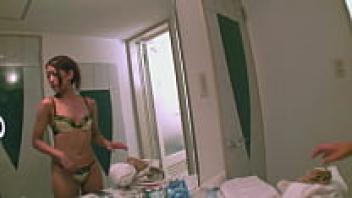 In the spa, a natural Japanese college girl engages in amateur creampie sex.