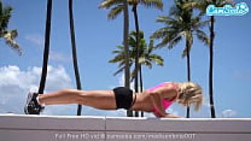 After working out, the young stud adores and lubricates the attractive MILF.