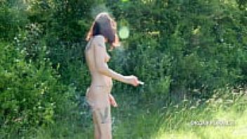 Elizabeth, the nudist MILF, is smoking a cigarette.