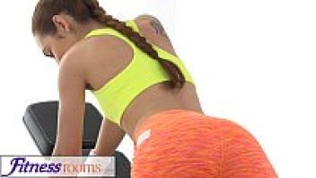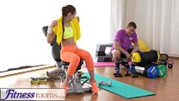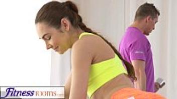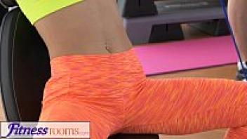 Exercise Rooms After her sweaty workout, the teen beauty receives affection.