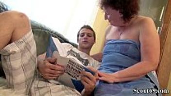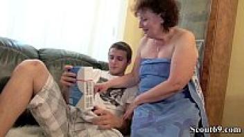 A little boy is seduced by a German BBW grandmother to adore her hairy pussy.