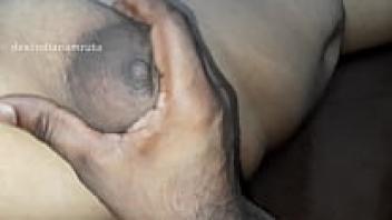 Laying down and showing her lover her sweet pussy and big boobs while also showing off her nice nipple, an Indian Desi Cute Lady