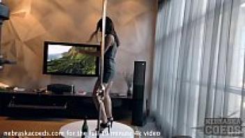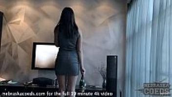 In her parents' home, a flexible nubile model records her first pornographic video.