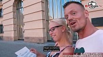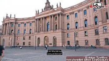 Public pickup of a plump German student at Berlin Humboldt University on EroCom Street