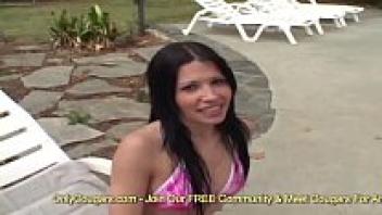 In a phoney job interview, a cute and athletic Colombian woman stretches her ass.