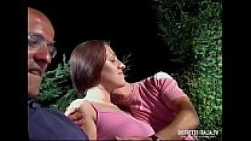 The man demonstrates to the brunette what a truly rough beating feels like, despite his advanced age.
