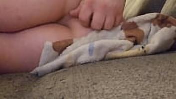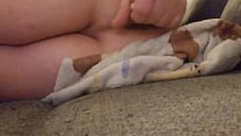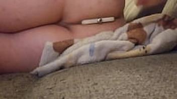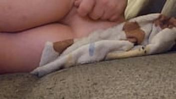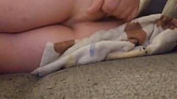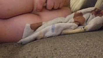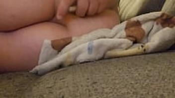 Extremely large butt plug pushed into a tight, soft ass by a horny camgirl