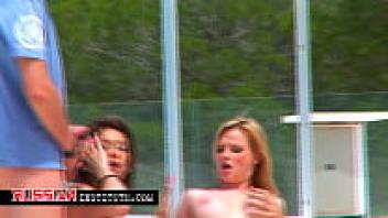 The bisexual blonde and brunette milfs host a party where the villagers engage in anal group sex.