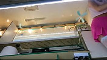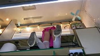 Beautiful teen upskirted at work.