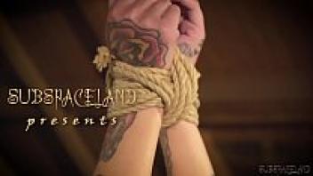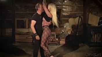 A babety blonde had a bondage slave girl bind up her pussy fingering.