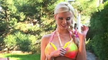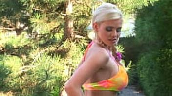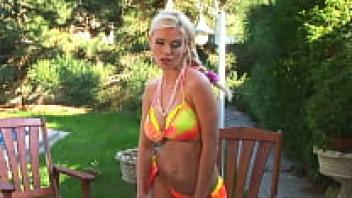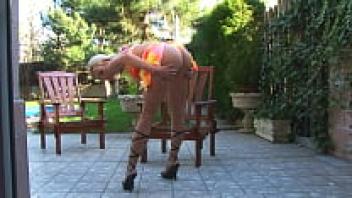 Caylian Curtis's blonde mother is outside masturbating her shaved pussy.