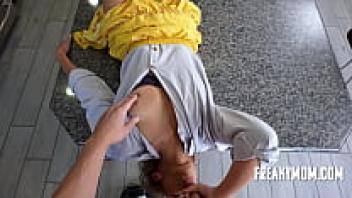 When Stepmom is getting ready to take a shower after work, she notices her stepson watching and masturbating and wants his thick cock inside of her.