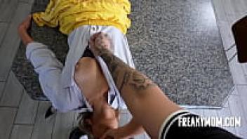 On the kitchen counter, a busty MILF spread (Stepmom POV)