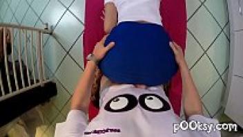 1496 - Blonde Amateur French beauty, dressed in cotton beaded dress, pink satin panties, and lingerie, love in doggystyle, rimming, blowjob, POV
