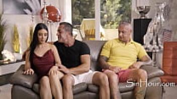 During group sex, her gorgeous milf body is too good not to roughly DP.