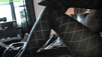 Maria sniffing in her black pantyhose.