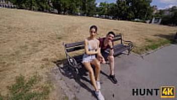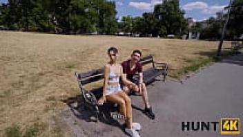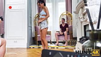 HUNT4K. Before playing around with her boyfriend's sponsor, the chick tries sucking.