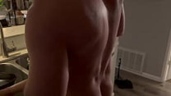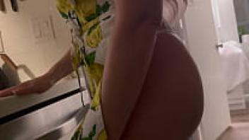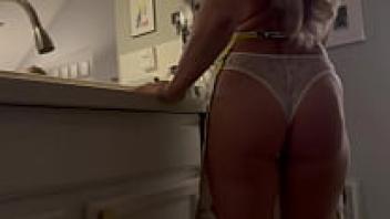 In the kitchen, the gorgeous blonde housewife is adored.