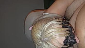 658: Dressed in a black satin dress, lingerie, and heels, the beloved blonde Milf