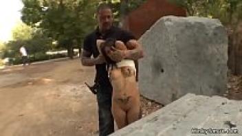 In public, a babe's throat was bound.