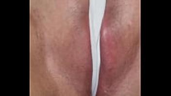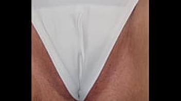 concealed behind her stunning cameltoe I discovered her little clit, which I play with till she cums.