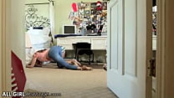 The brunette hottie and blonde Lez rush inside to lick their holes instead of working out.