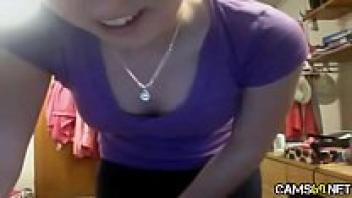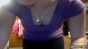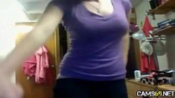 Amateur camgirl stripping with a thin bodytype