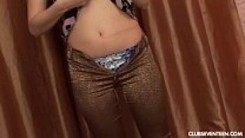 Milana, a tanned adolescent beauty, masturbates