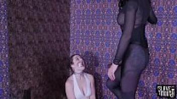 By her cold-hearted mistress, a teenage oral sex slave receives a b. face loving from her companion.