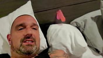 A 70-year-old man is ridden by a horny chick.