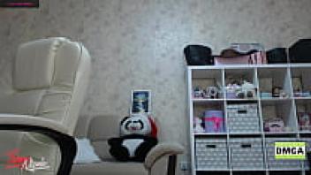 In a private setting, the well-known webcam model Mia dances.