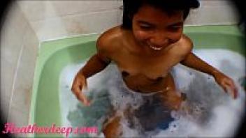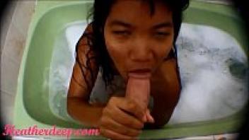 Thai Teen Heather Deep in an HD Bathtub Creamthroat Throatpie