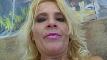 A gorgeous blonde cougar stuffs her hairy pussy.