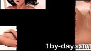 Evelyn, a brunette, fingering her pussy
