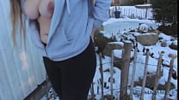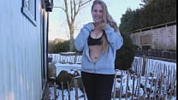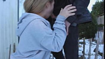 Outside, a cute and chubby teen with a big white ass is showered with overwhelming affection.