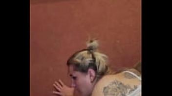BBW Ebony Standing Dog, messy blowjob, and facial cumshot