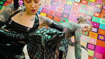 Babes with LATEX ANAL tattoos stretching their asses