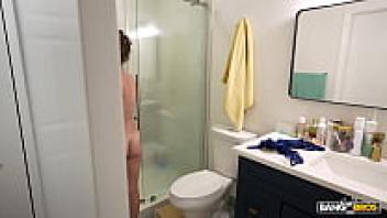 BANGBROS: After cleaning her stepson's cock in the shower, Justine Jacobs brings it into the bedroom.