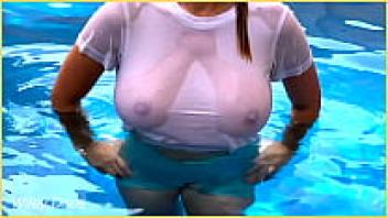 Sitting on her gymbro's cock is a brunette wearing torn leggings.Tara Rico
