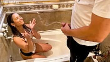 My stepfather's deep throat, bath of urine, and his urination -RED VIDEO FULL-