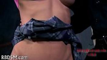 Authentic amateur homemade BDSM pornography with a slave girl undergoing nipple torment and tits spanking