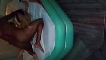 Interracial bisexual threesome, with spouse licking my pussy and swallowing bull's cock before a double vaginal and cum eating