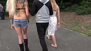 Crazy, two German cum girls are performing a Gangbang in a parking lot on the Autobahn.