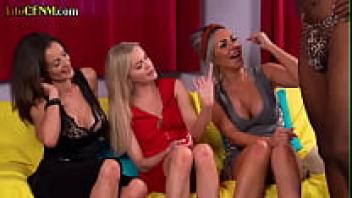 The lucky dude's CFNM dominant mature and chick group suck cock